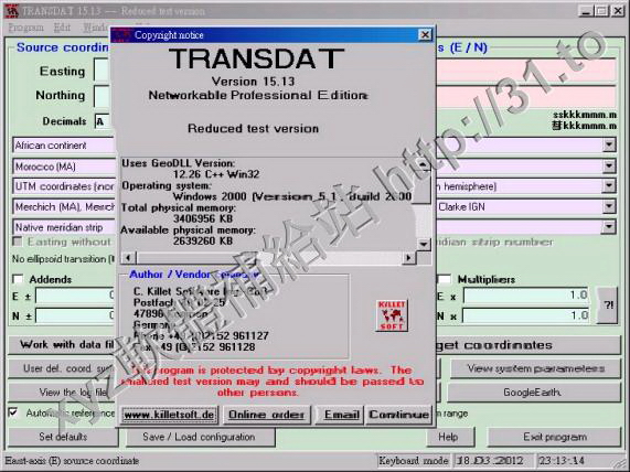 • Killetsoft TRANSDAT v17.18 英文正式版(地理坐標轉換軟體)