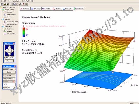 Your Design-Expert program offers rotatable 3D plots to easily view